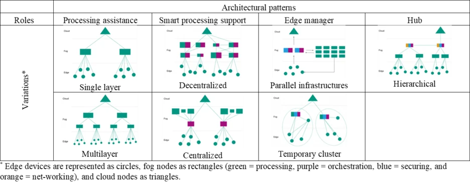 We developed seven architectural patterns for fog systems based on an initial literature review and multiple rounds of interviews with experts from industry and research. These patterns include: