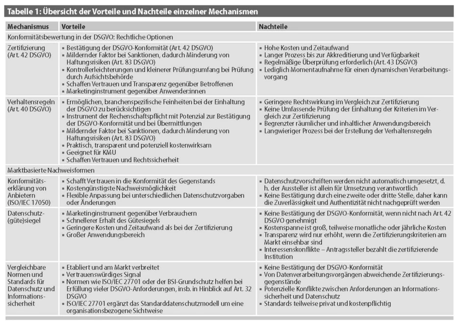 Title: Nachweis von Datenschutzbemühungen in Unternehmen: Bewertungsmethoden und deren Nachweismechanismen im Vergleich