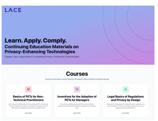Learn, Apply, Comply - Development of Continuing Education Materials on Privacy-Enhancing Technologies (LACE)