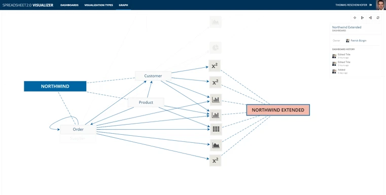 The Spreadsheet 2.0 prototype is built based on the chair's SocioCortex platform, and furthermore consists of two clients, namely the Spreadsheet 2.0 DataTable as part of the SocioCortex Content Manager and the SocioCortex Visualizer. The Spreadsheet 2.0 DataTable component is an end-user-friendly and spreadsheet-like web application for the collaborative management of complex-linked data, while the Visualizer component is a flexible dashboard solution. Through the analysis of data functions and visualizations within the DataTable and Visualizer components respectively, the Spreadsheet 2.0 application can foster the transparency of the information flow from the data's origin to the consuming user.