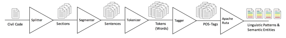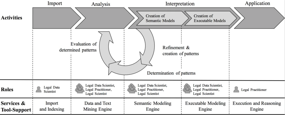 Artificial intelligence on the other hand automatically tries to unveil new structures and information from existing text corpora using logical frameworks or engines (Casanovas, Sartor, Casellas, & Rubino, 2008). Based on the fact, that laws are mostly represented as text, we will use Natural Language Processing (NLP) to extract relevant entities from those existing legal texts (Francesconi, 2010).