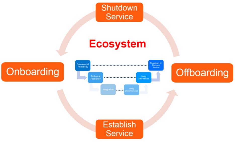 A key success factor for a smart-service platform is the establishment of an ecosystem of partners, who use the platform to provide highly attractive (cheap, innovative, secure, valuable etc.) data and services to their respective target users (individuals, companies, public administrations and communities). A well-known example is the Apple App Store. For the construction and maintenance of this ecosystem new partners and services have to be added dynamically based on a structured process (onboarding) and after terminating the use of the platform they have to be removed safely from the ecosystem (offboarding).